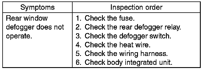 REAR WINDOW DEFOGGER SYSTEMINSPECTION