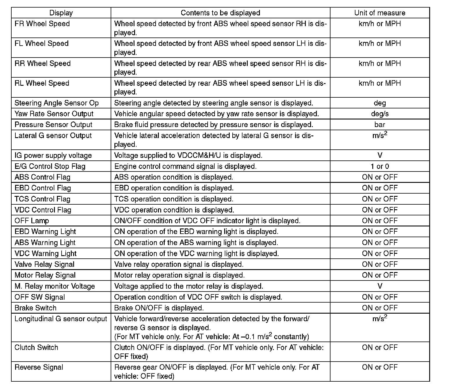 ^ When the registration has not been performed, the DTC code "Parameter selection error" is detected together with the ABS/EBD/VDC warning light illumination.
