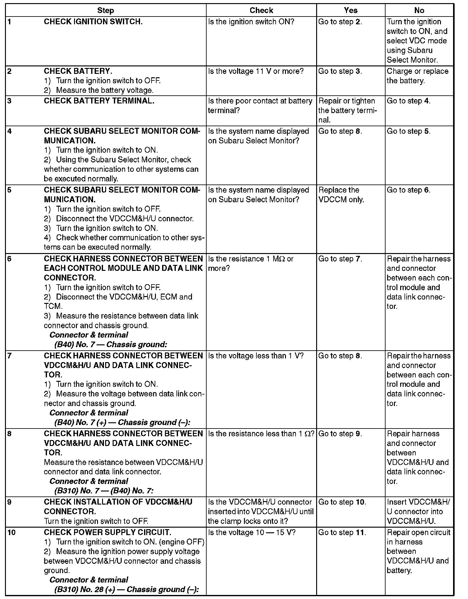 9) If VDC and Subaru Select Monitor cannot communicate, check the communication circuit.
