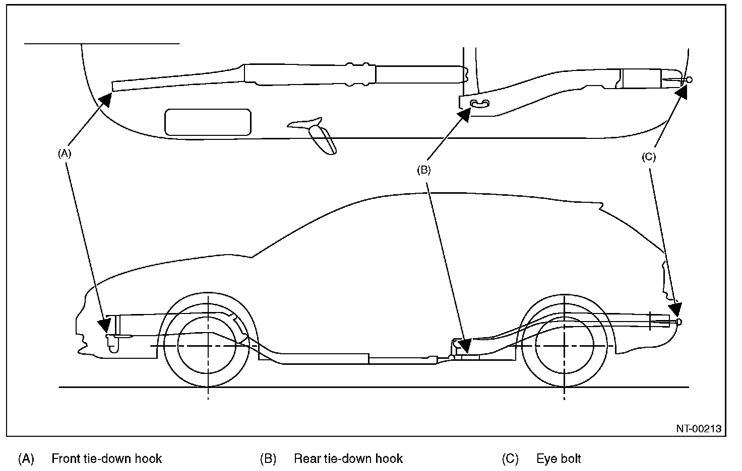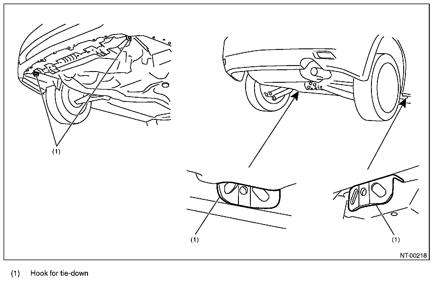 The tie-down hooks are used when transporting vehicles and when using the chassis dynamo. Attach tie-down only to the specified locations on the vehicle.