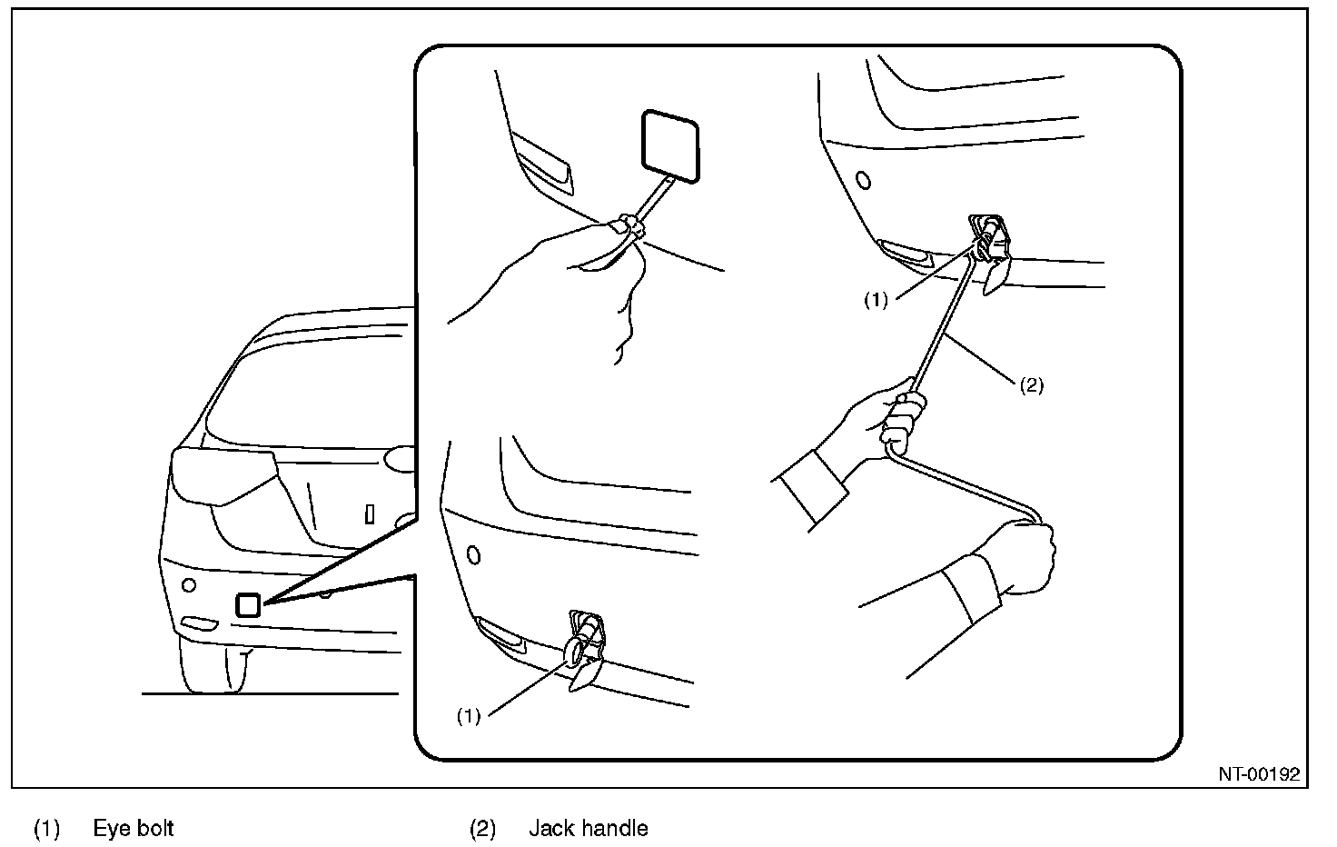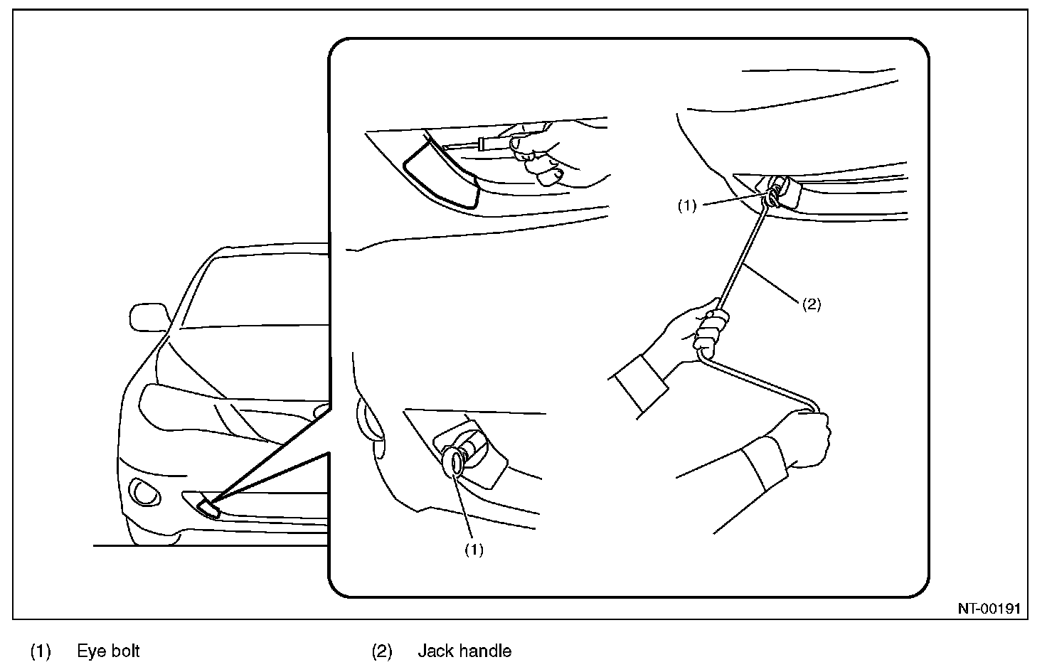 - When tightening the eye bolt using a wheel wrench, be careful not to scratch the bumper.