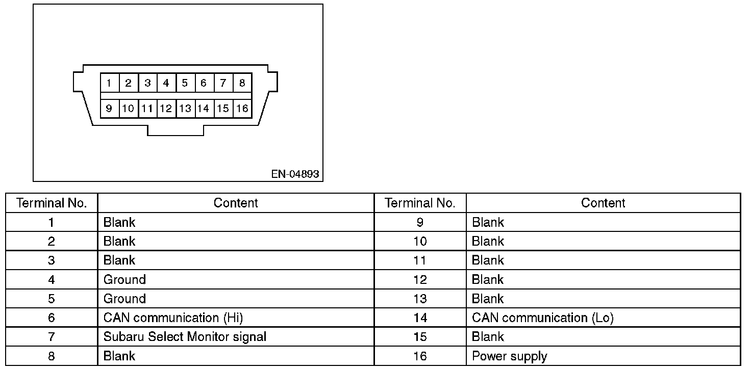 CAUTION: Do not connect any scan tools other than Subaru Select Monitor or general scan tool because the circuit for Subaru Select Monitor may be damaged.