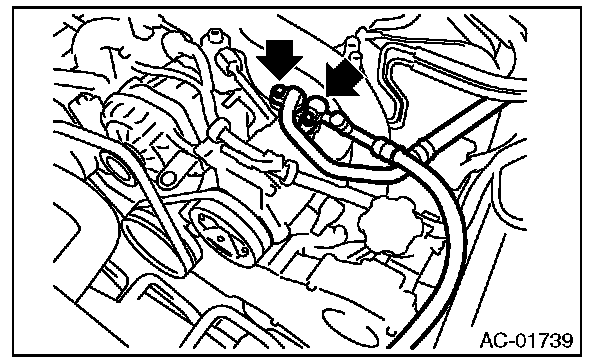 7. Remove the bolt and remove the low-pressure hose and high-pressure hose.