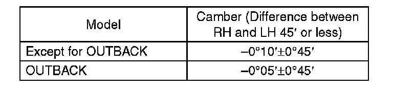 1) When adjusting the camber, adjust it to the following value.