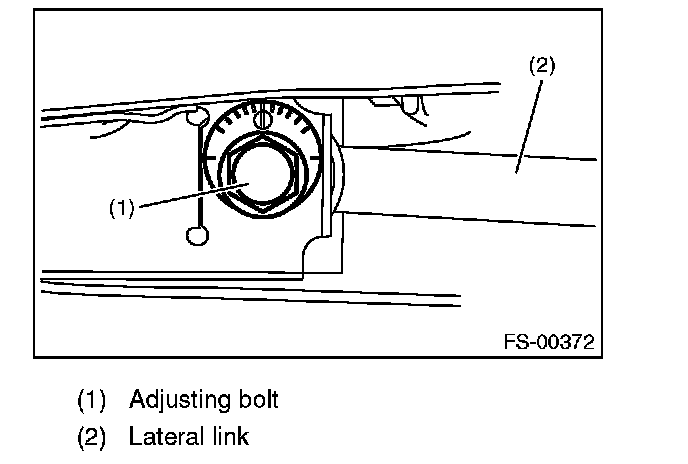 1) Make thrust angle adjustments by turning the toe-in adjusting bolts of the rear suspension equally in the same direction.
