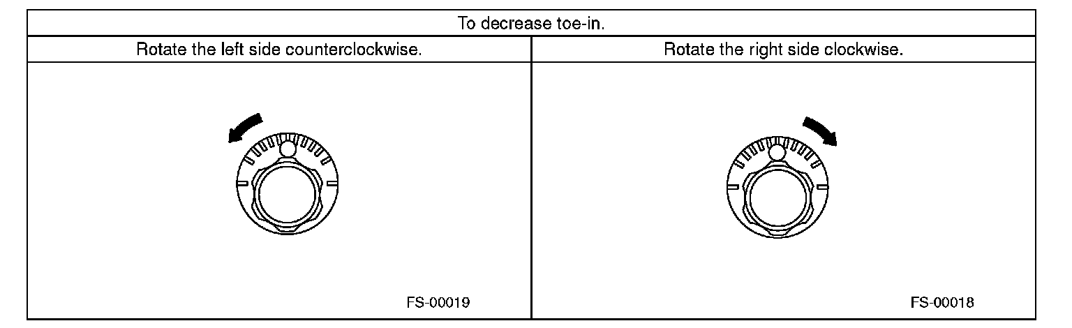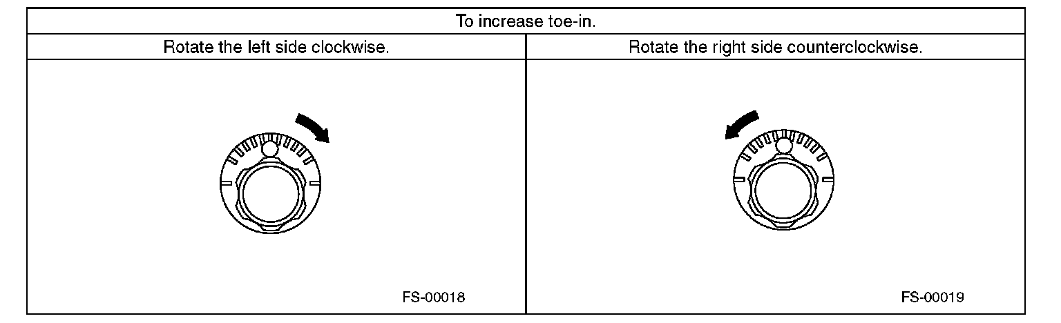 2) When one rear wheel is adjusted in a toe-in direction, adjust the other rear wheel equally in toe-out direction, in order to make the thrust angle adjustment.