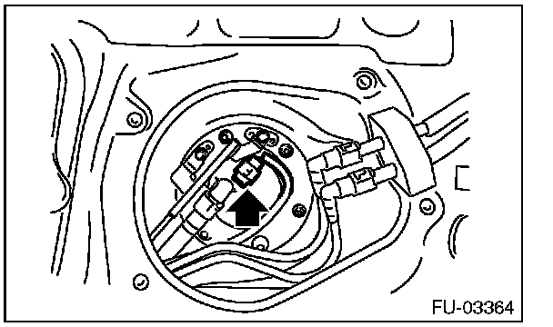 - Align protrusion (B) of the fuel sub level sensor to the cut out in the fuel sub level sensor upper plate.