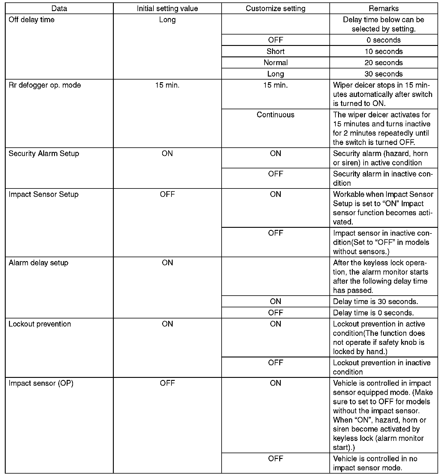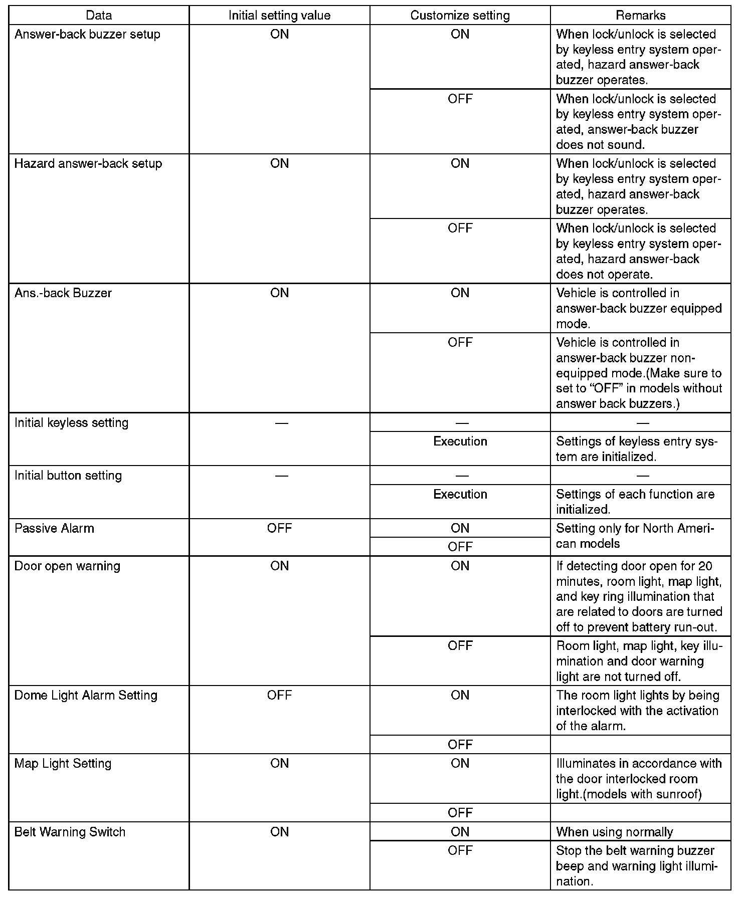 - Each settings have been set. It can be recognized by key ring illumination coming on in concocting with room light and going off with ignition switch turned to ON.