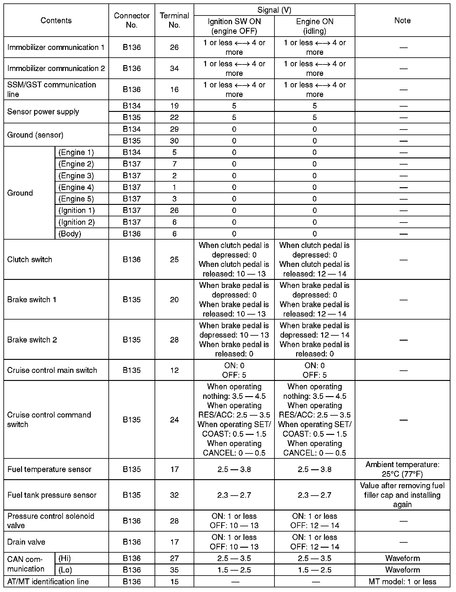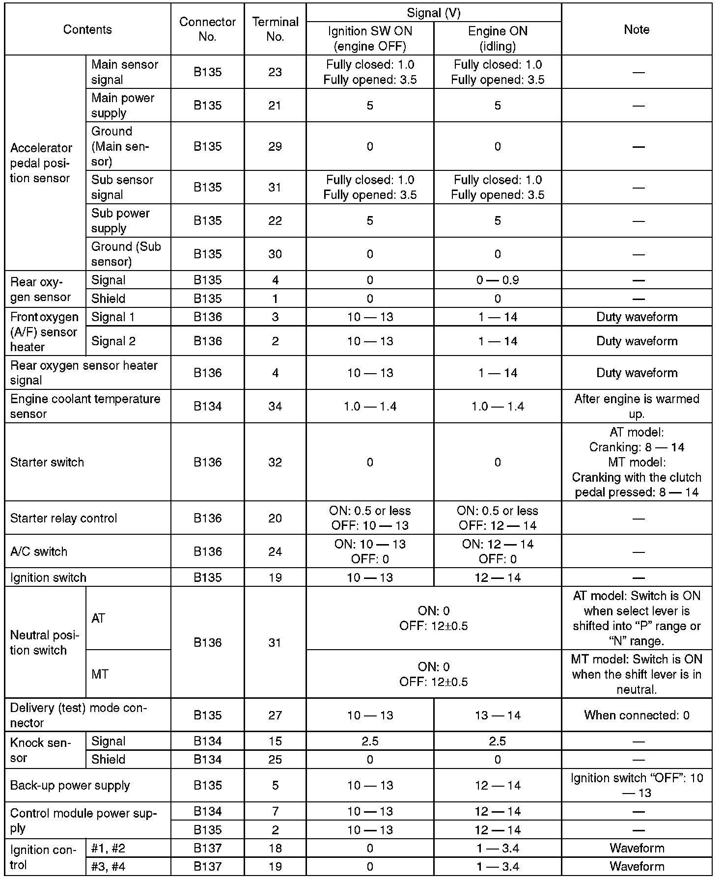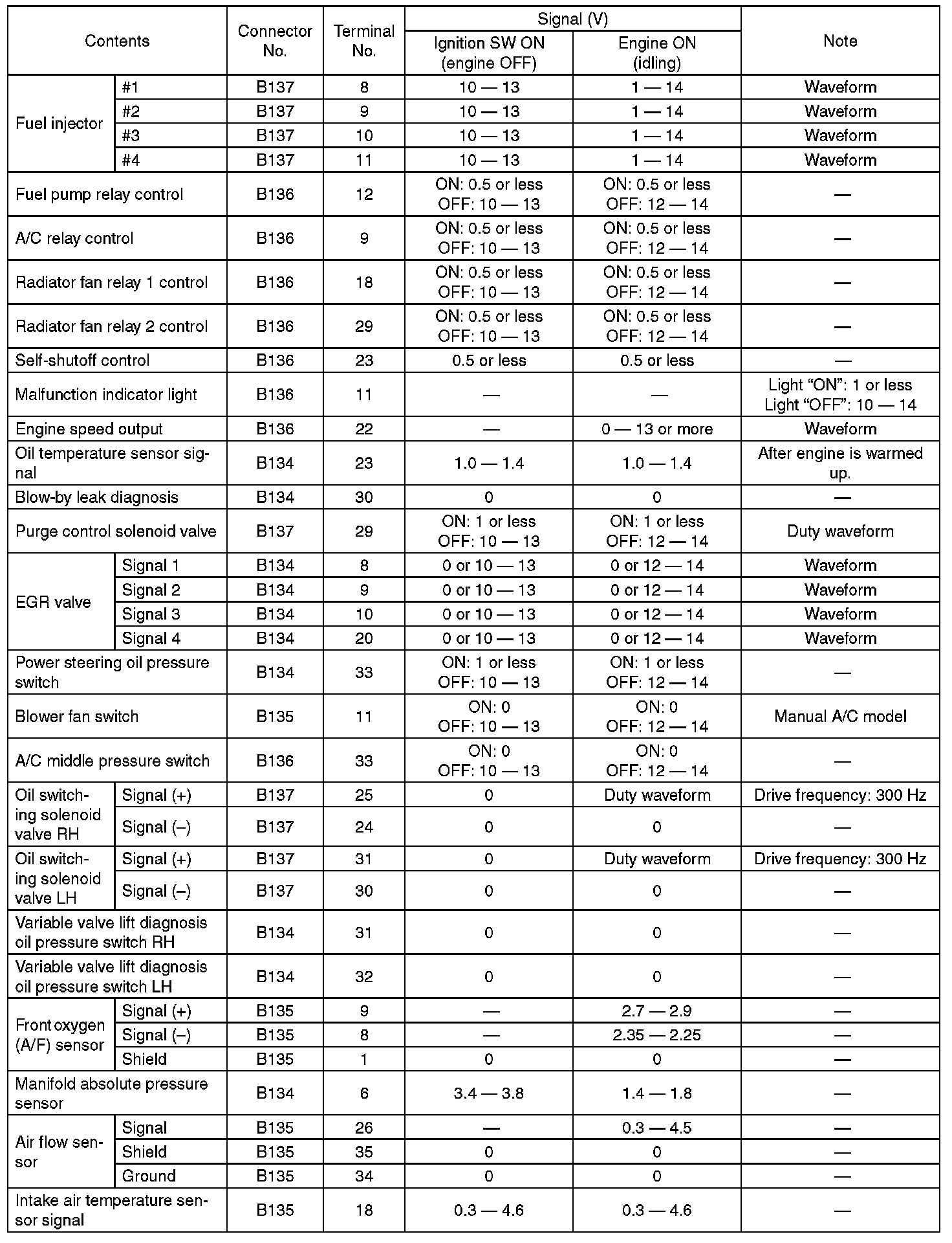Engine Control Module (ECM) I/O SignalELECTRICAL SPECIFICATION