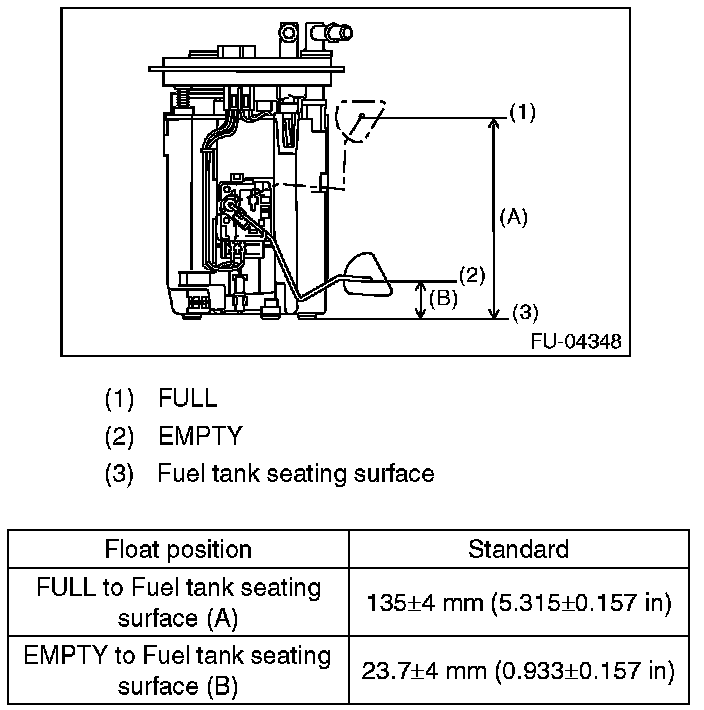 1. Measure the fuel level sensor float position.