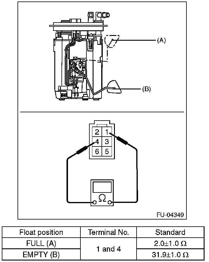 NOTE: When inspecting the fuel level sensor, perform the work with the sensor installed to the fuel pump.