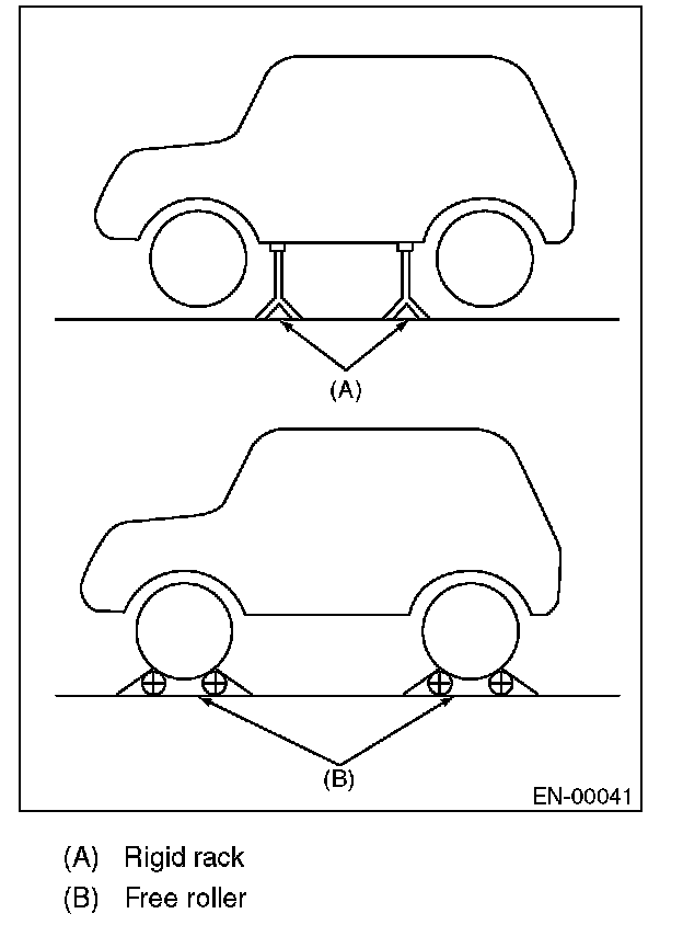 2. Lift up the vehicle using a garage jack and place it on rigid racks, or drive the vehicle onto free rollers.
