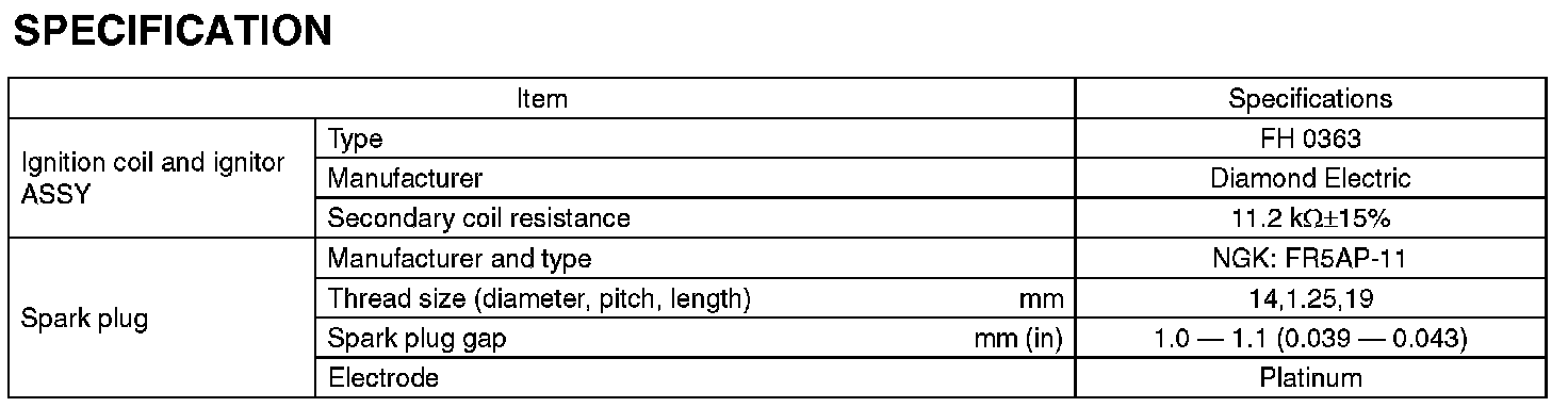 Ignition System: Specifications