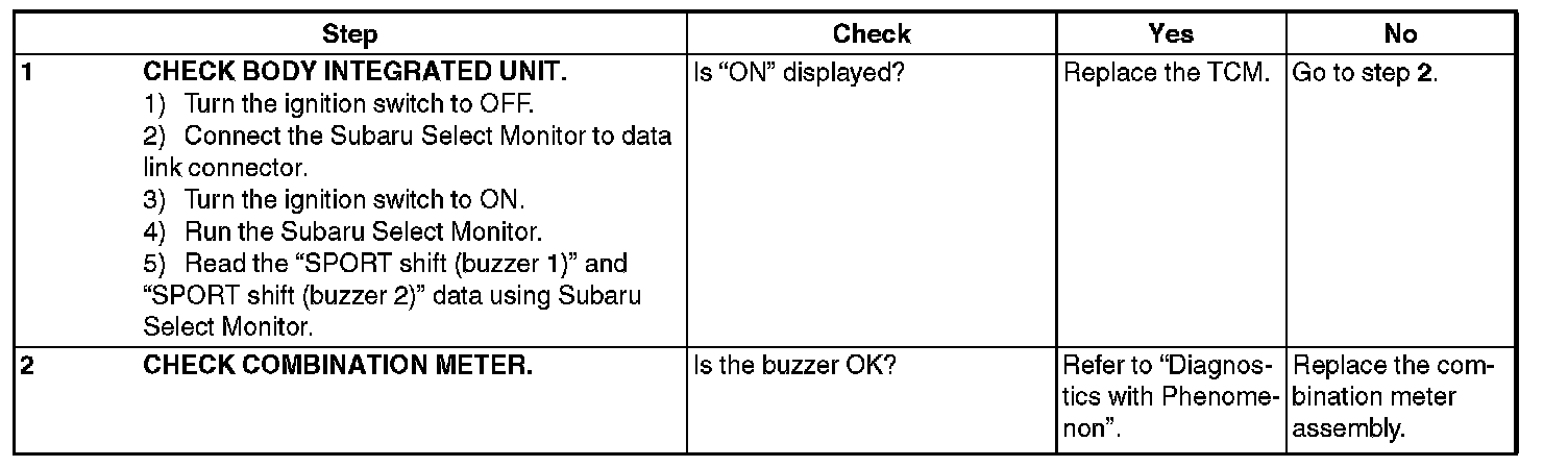 Output signal circuit of buzzer is open or shorted.