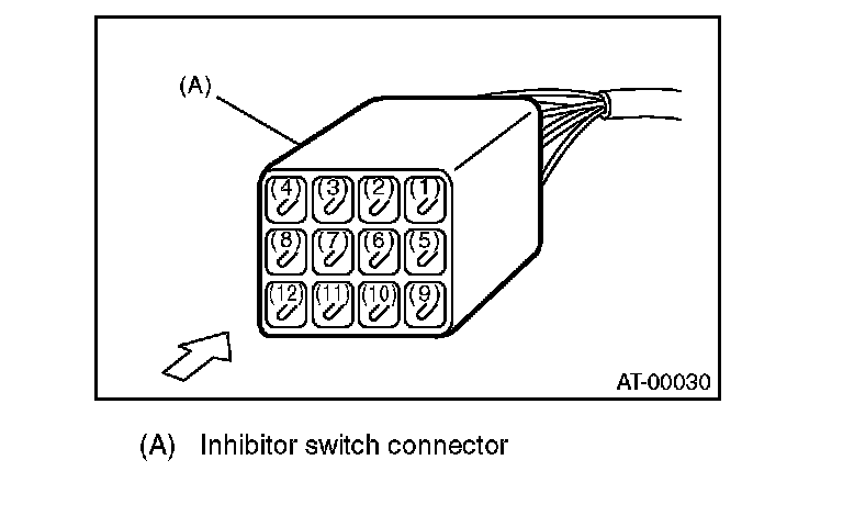 2) Check continuity in inhibitor switch circuits with the select lever moved to each position.