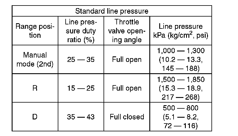 2) Measure the line pressure when the select lever is in "R" or 2nd gear of manual mode with engine under stall conditions.