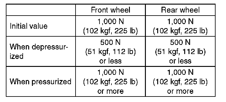 7) Read values indicated on the brake tester and check if the fluctuation of the values between decompression and compression meets specification.