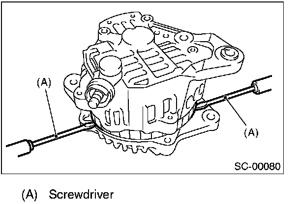 3. Insert the end of a flat tip screwdriver into the gap between stator core and front cover. Pry them apart to disassemble.