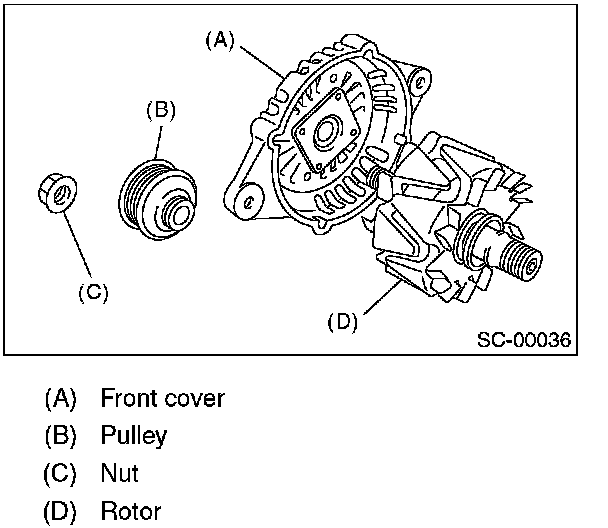 5. After re-assembling, manually turn the pulley to check that the rotor rotates smoothly.