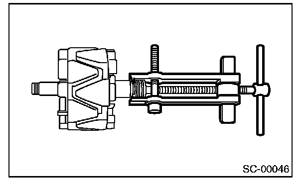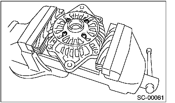 CAUTION: When holding the rotor with a vise, place aluminum plates or wooden pieces on the vise jaws to prevent rotor from damage.