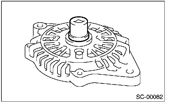 4. Heat the bearing box in rear cover [50 to 60 °C (122 to 140 °F)], and then press the rear bearing into rear cover.
