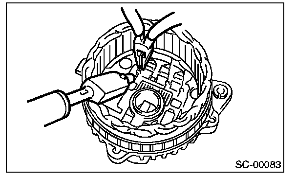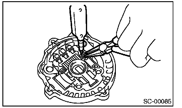 CAUTION: The rectifier is easily damaged by heat. Do not allow a 180 - 270 W soldering iron to contact the terminals for 5 seconds or more at a time.