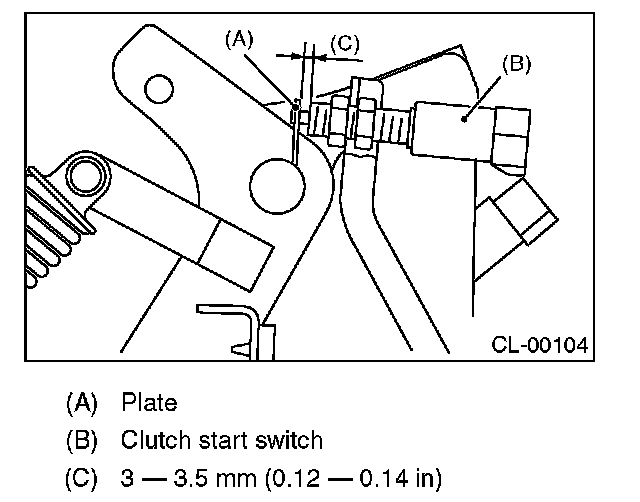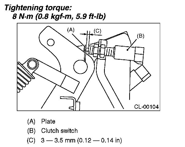 3) Adjust the gap of the clutch pedal plate and the clutch switch to be 3 - 3.5 mm (0.12 - 0.14 in).