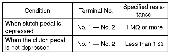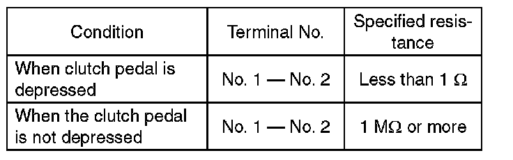 2) Check the clutch switch for continuity. If the resistance is not at the standard value, replace the switch.
