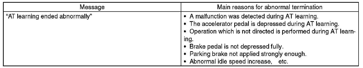 ^ If the message "Execute AT learning again after fixing troubles of the vehicle" is displayed during learning, select [OK] to display the List of Diagnostics Trouble Code. After repairing the locations indicated by the DTC, start the "AT learning mode" over from the beginning.