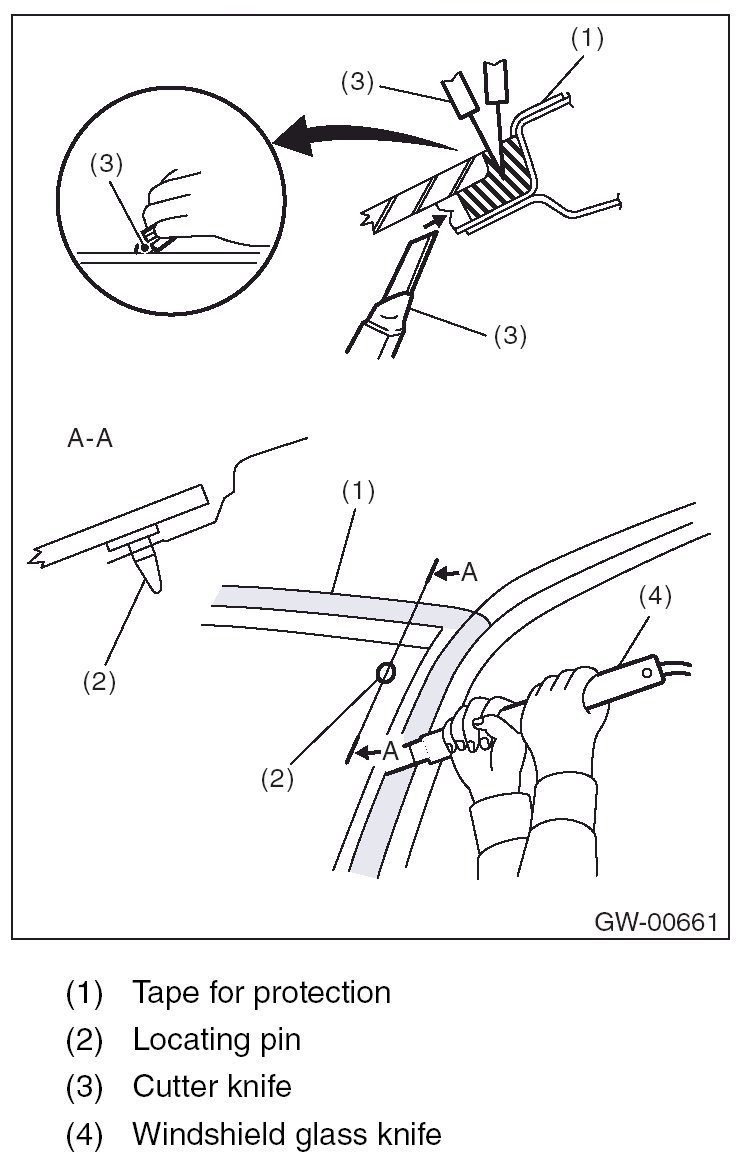 - Cutting of adhesive part shall be started with wider gap between windshield glass and body.