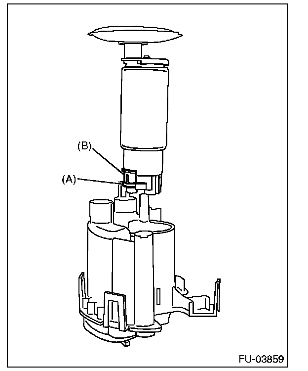 1. Attach O-ring (A) and spacer (B) to pump assembly, and install the pump assembly to the fuel filter.