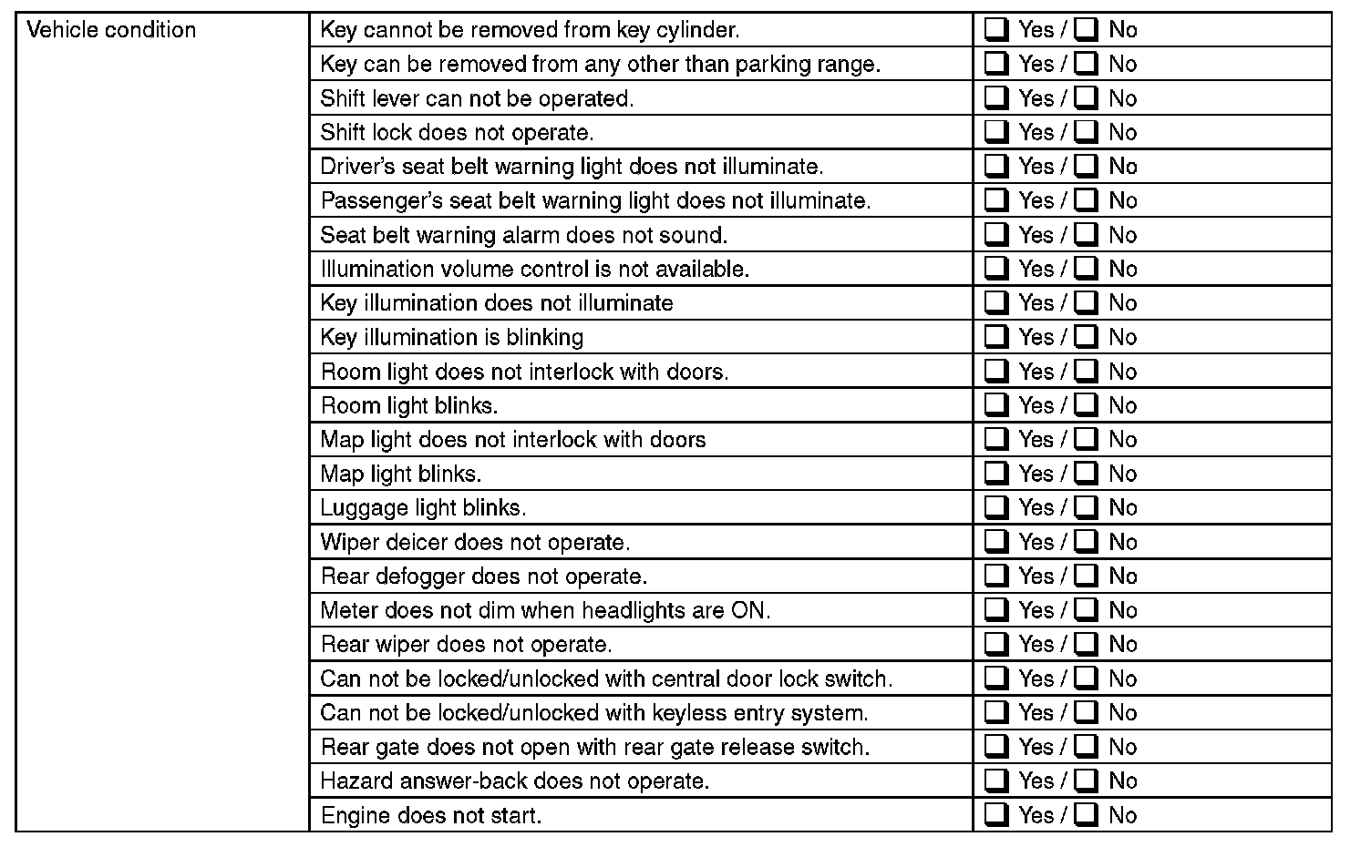 Inspect the following item about the vehicle's state.