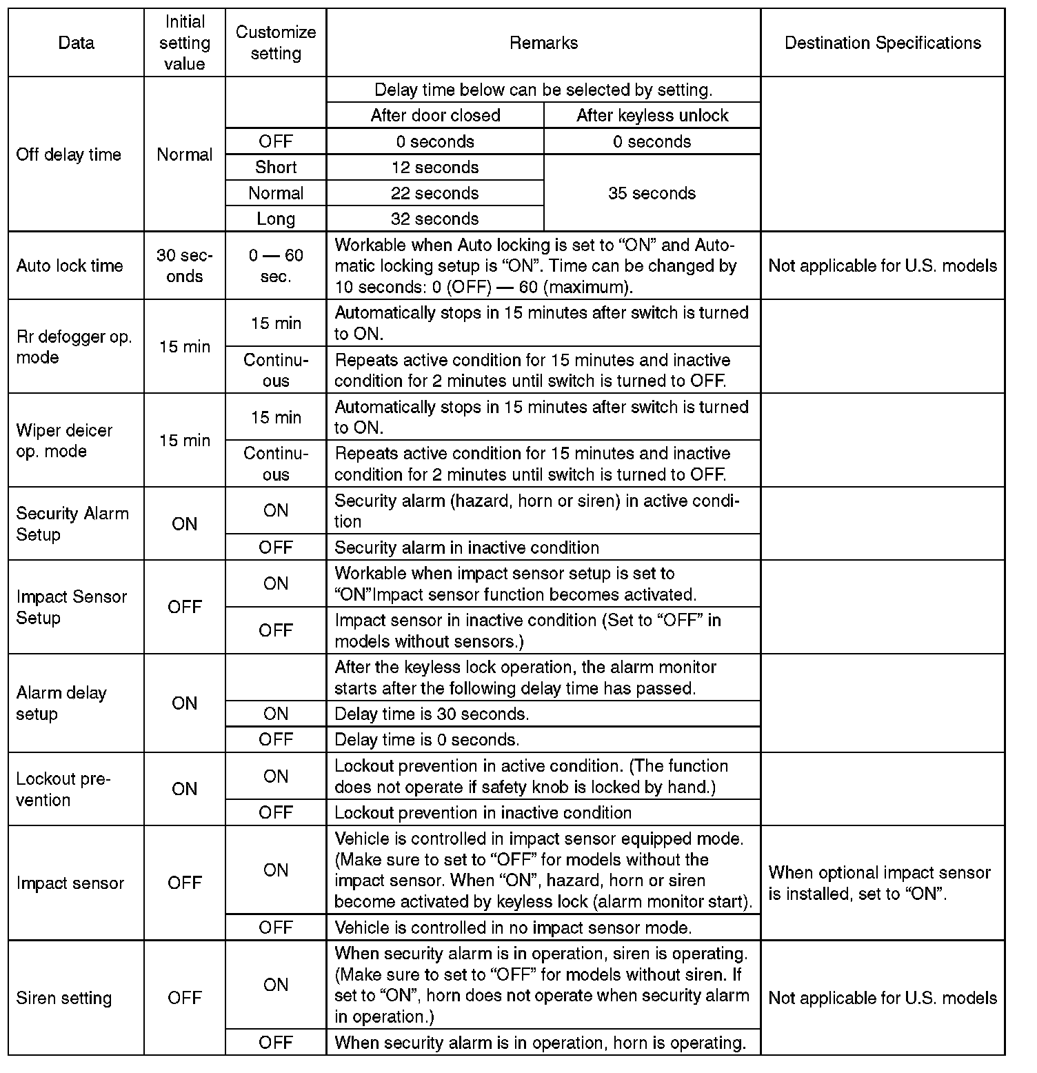 - The above settings must match the actual vehicle equipment for proper operation.