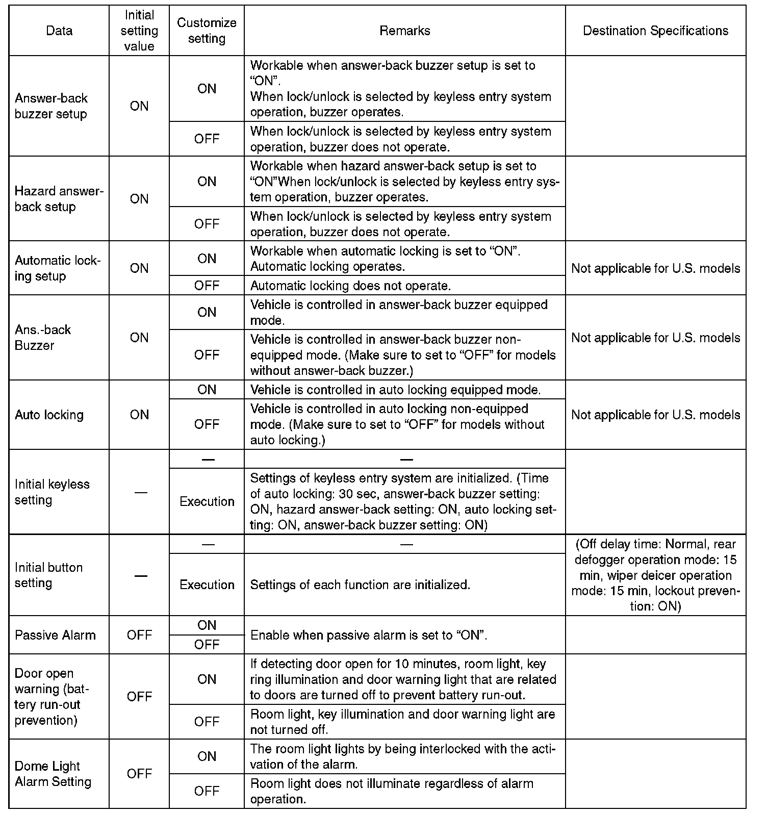 Each settings have been set. It can be recognized by key illumination coming on in concocting with room light and going off with ignition switch turned to ON.