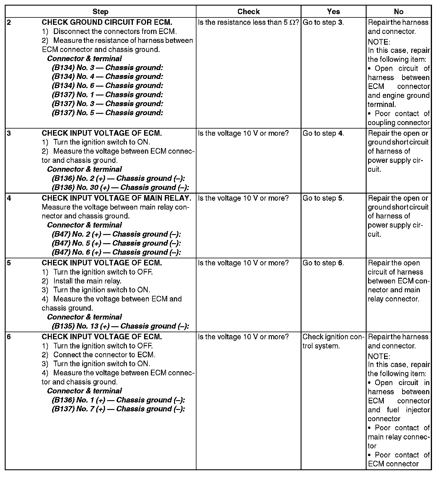 Check Power Supply and Ground Line of Engine Control Module (ECM)