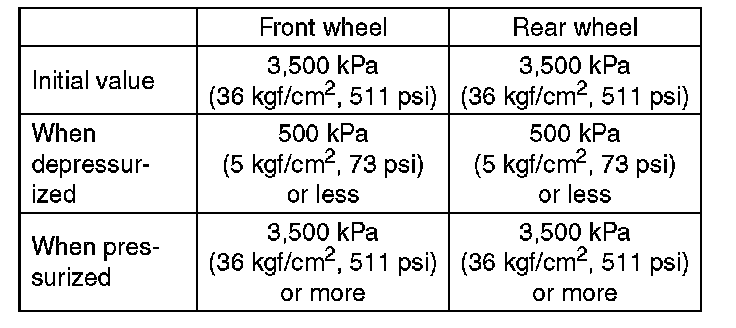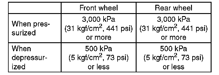 7) Read values indicated on the pressure gauge and check if the fluctuation of the values between decompression and compression meets specification. Depress the brake pedal and check that it is not abnormally hard, and tightness is normal.