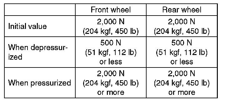7) Read values indicated on the brake tester and check if the fluctuation of the values between decompression and compression meets specification.