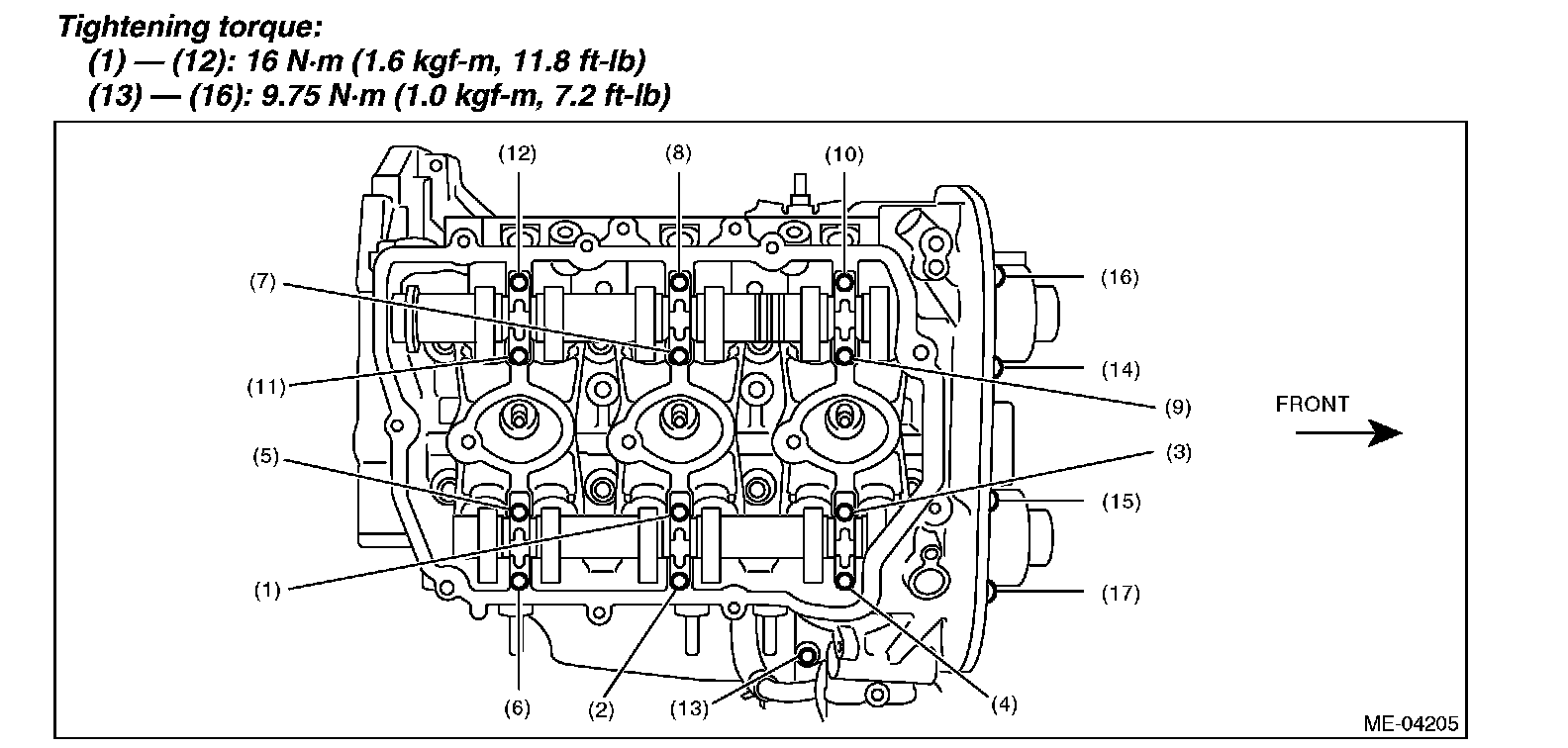 Cylinder head boltsTighten 20 N.m (2.0 kgf-m, 14.8 ft-lb)