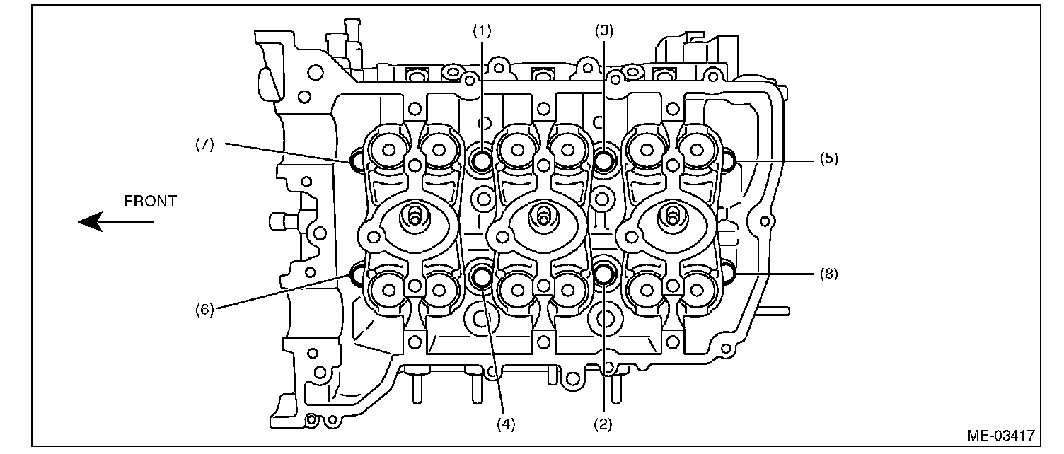 Tighten bolts (5) - (8) 44 N.m (4.5 kgf-m, 32.5 ft-lb)