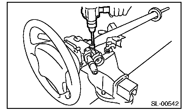 3. Secure the steering column in a vise. Remove the bolt with a drill.