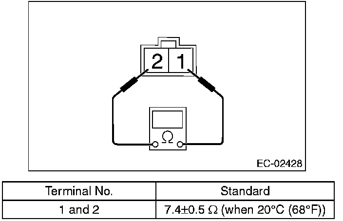 2. Measure the resistance between the oil flow control solenoid valve terminals.