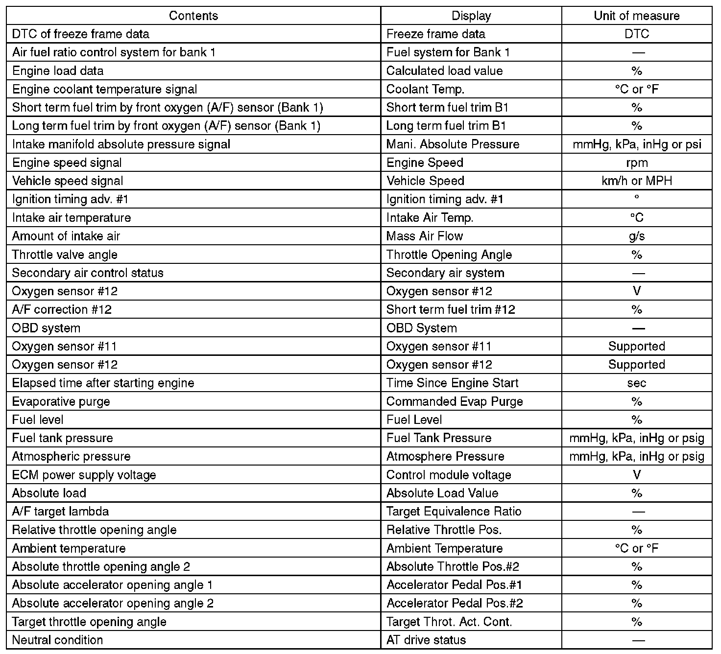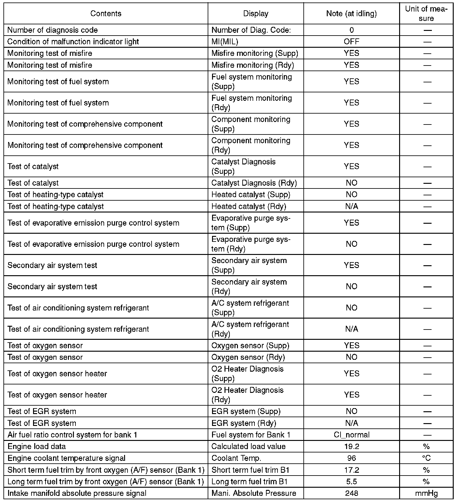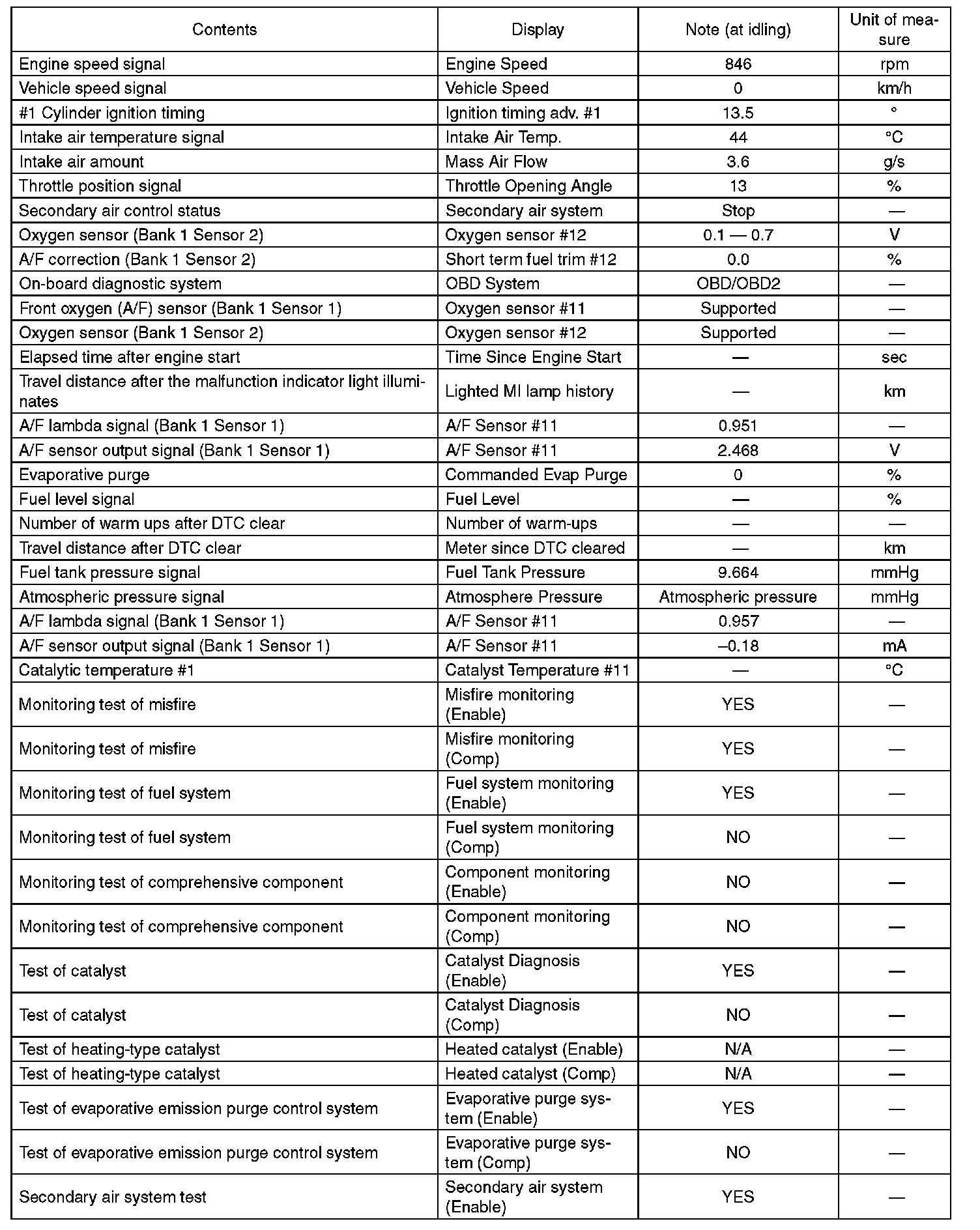 3. READ CURRENT DATA FOR ENGINE (OBD MODE)