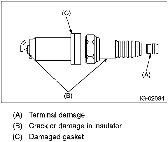 2. Check the spark plug electrode and condition of the insulator. If abnormal, check and repair the cause and replace the spark plug.