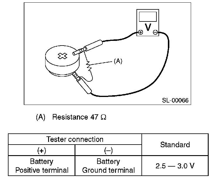 2. Replace the battery if the inspection result is not within the standard value. (Use CR2025 or equivalent.)