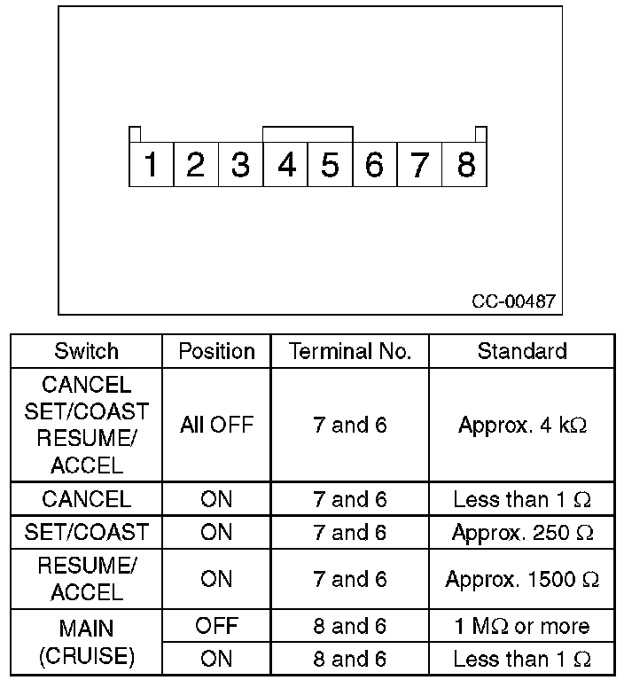 3. Replace the cruise control command switch if the inspection result is not within the standard value.