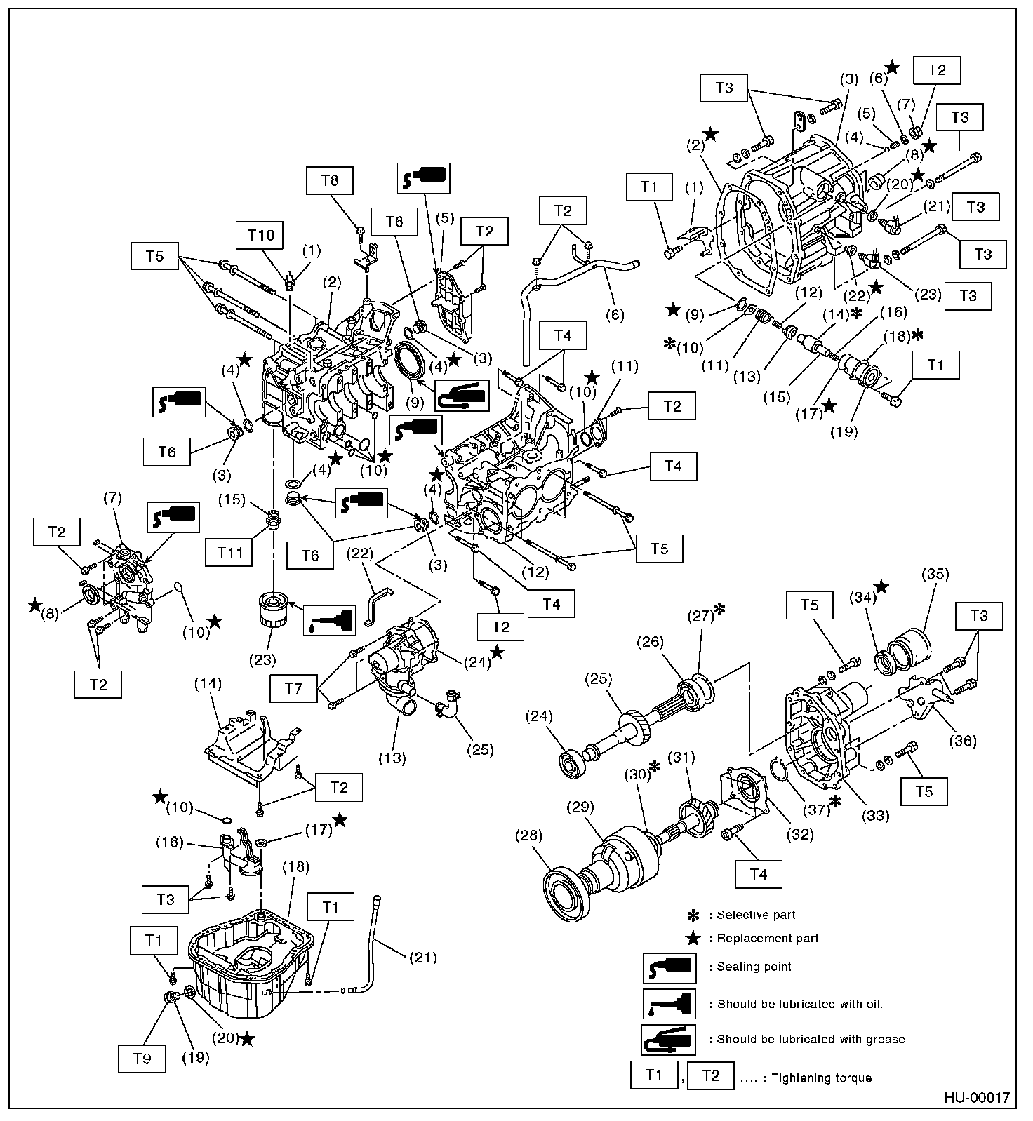 Illustrations are provided for each component. The information necessary for repair work (tightening torque, grease up points, etc.) is described on these illustrations. Information is described using symbol. To order parts, refer to parts catalogue.