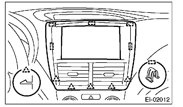 3. Remove the claws, and remove the air vent center grille from the center panel.
