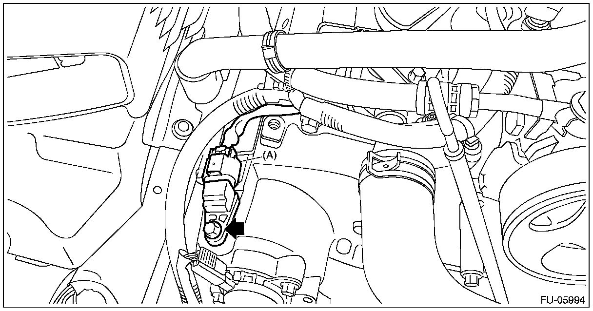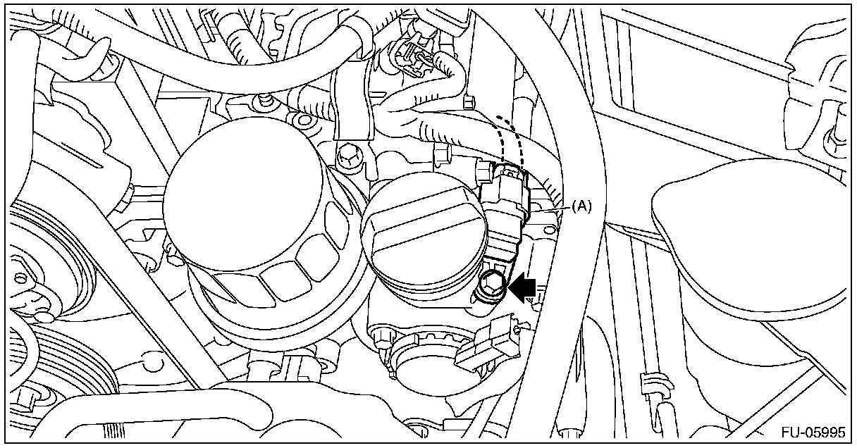 3. Disconnect the connector (A) from the camshaft position sensor, and remove the camshaft position sensor from the chain cover.