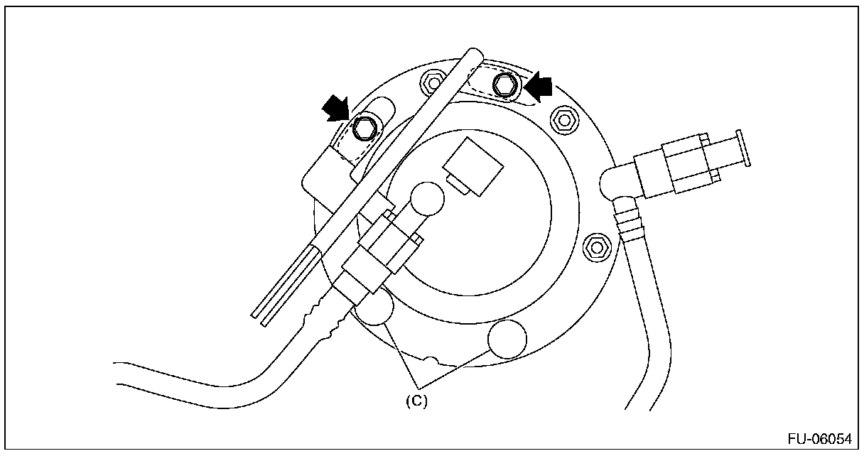 - After tightening, install the rubber cap (C) at the position shown in the figure.