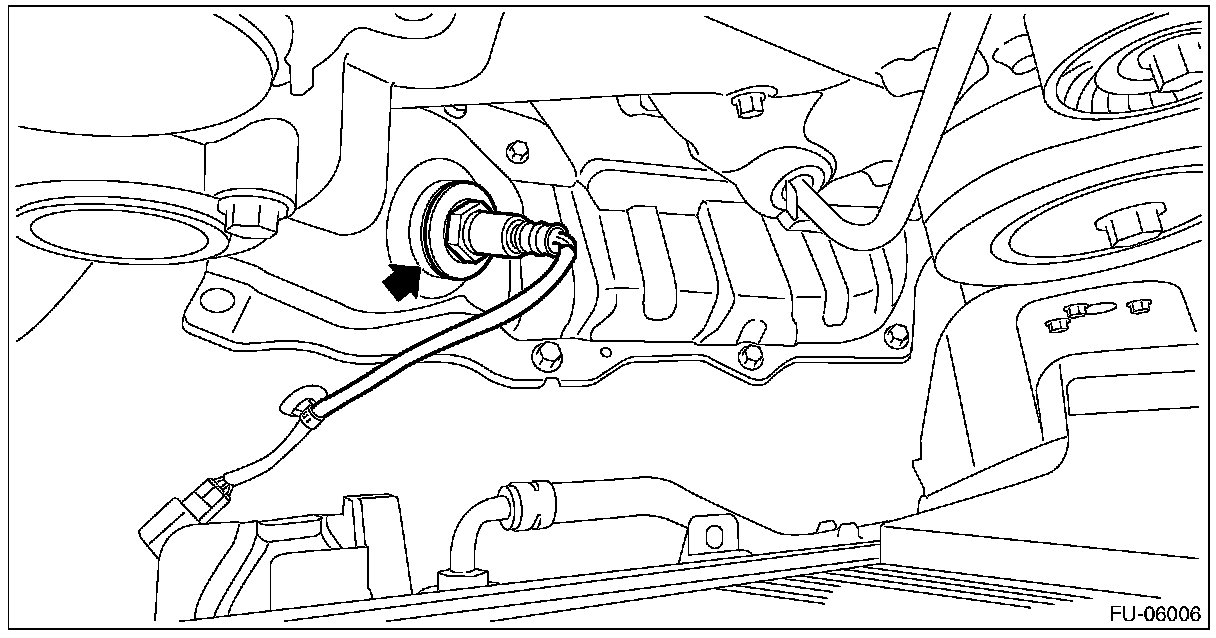 7. Apply spray-type lubricant to the threaded portion of front oxygen (A/F) sensor, and leave it for one minute or more.